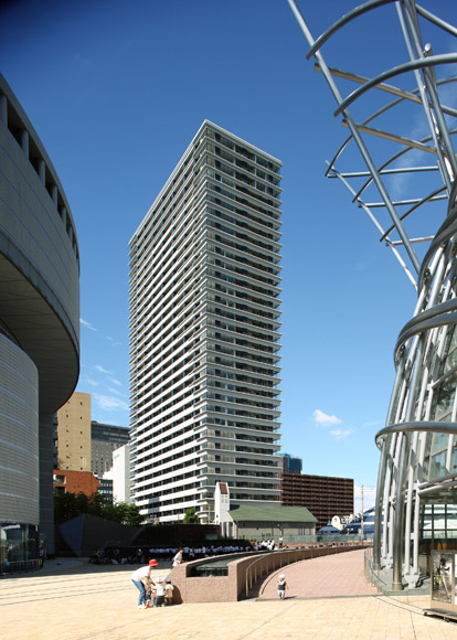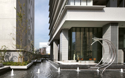 大阪の中之島に建つ超高層集合住宅です。高さによって異なる周辺都市環境に応答し、空に向かって段階的に変化するフレームを開発し、都市景観と居住性への配慮を行いました。また、五感を刺激する水と緑の開放的なランドスケープが、訪れる人々に潤いを与えています。