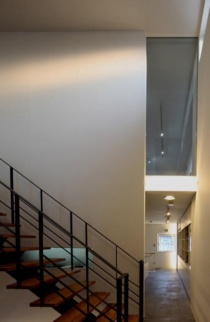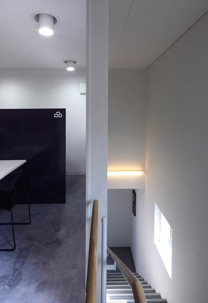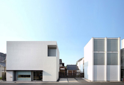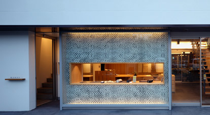 老舗呉服店のリニューアル事業として老朽化した店舗を建替えた計画です。1階は呉服店、2階は質屋とオフィス、3階はギャラリースペースで構成しています。外観はガラスブロックをデザインモチーフに、4年前に竣工した住宅と対をなすファサードとしています。ショーウィンドーには敷地内の土蔵のなまこ壁パターンを活用するなど、記憶を継承したデザイン展開を行い、和文化とアートが綾をなす店舗コンセプトとともに、地域活性のシンボルとして作品の価値を構築しました。