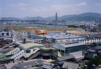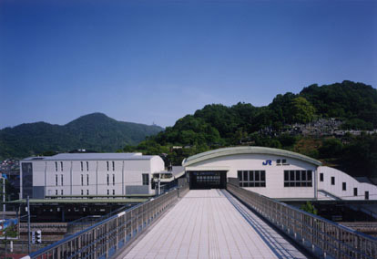 広島市と呉市の間にある坂町にある、JR坂駅と直結した施設で、1,2階に町営駐輪場、3,4階に町立図書館をもつ複合施設です。