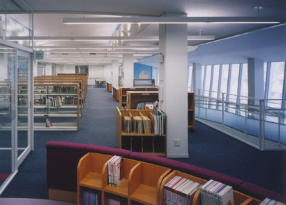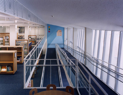 町の人々が利用する図書館は、町のリビングライブラリーとして親しみを感じてもらうことをねらいとしました。
