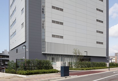 インターネットサービスなど情報通信事業を展開する企業が広島駅直近の再開発地区に計画したICTセンターです。情報を守るための高い信頼性と機能性、万全のセキュリティを備え、災害対策拠点としても機能する施設としています。外観は、ICTセンターの先進性と求められる信頼感のイメージをシンプルでモノトーンな壁面構成で表現しました。沿道の連続した植栽など、開発が進む周辺街区と連続した景観形成にも配慮しています。