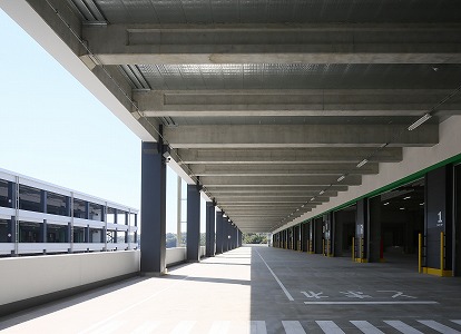 中四国地方最大のマルチタイプ大型物流拠点となるGLP岡山総社Ⅱ。Ⅰ期と左右対称の配置でGLP岡山総社センターとして対を成す構えとしています。当施設ではBCP対策として免震構造の採用や、非常用発電機及び備蓄倉庫の設置しています。また躯体PCにより長寿命化と鋼製型枠材の使用による省CO2を実現しています。屋根全面にソーラーパネルを設置、全館LED器具を採用しZEBを実現した環境配慮型物流施設です。