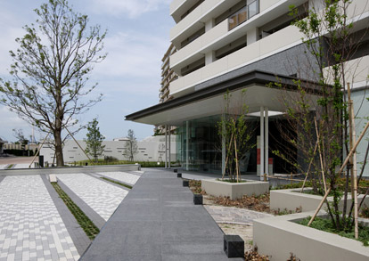 この計画で当社は、片廊下型7階建て54戸、階段室型15階建て90戸、超高層34階建て192戸という3棟の集合住宅と、街区全体にわたる外構ランドスケープデザインの設計・施工を担当しました。今年、高さ115.3mで福岡市一の超高層集合住宅となる「マリナタワー」が竣工し、水と緑の庭園都市「リべーラガーデン」がグランドオープンしました。