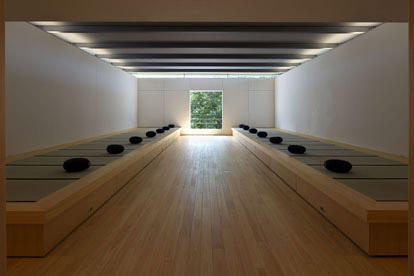 境内に古くからある木造寺院や樹木との調和を図りながら、伝統建築の大屋根や高床式架構などが生みだす深い陰影、建築と自然の融合、ダイナミックな架構美という要素を現代に置き換え、静謐で高い精神性を持つ空間を創出しました。