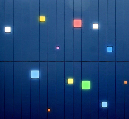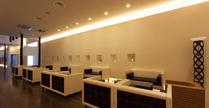 広告性の強い郊外型商業施設とは対比的に、シンプルな外観によりロードサイドに建物の存在感を高めた商業施設です。ボリューム構成により周囲の山並みとの対比や調和を図りながら、外壁のカラーリングや、天の川やオーロラを表現したLED照明により、アメニティを高めた魅力ある演出を行っています。