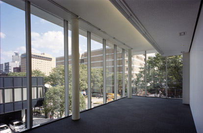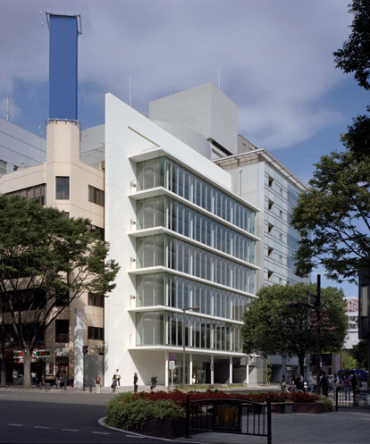 仙台市のメインストリートである定禅寺通りの玄関口となる交差点に建つオフィスビルです。 市役所へのメインアプローチともなる敷地の場所性を考慮し、1階前面道路側をピロティとして市民に開放する「街に開くオフィス」としました。スレンダーな架構表現による透明感のあるファサードの内部では、開放的な執務空間を創出しています。