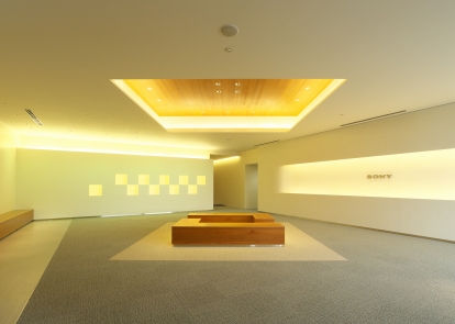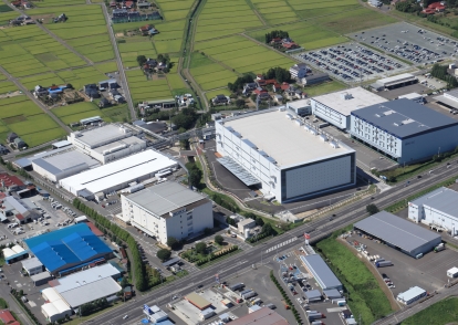 ソニーの製品に見られるフローティングデザインをモチーフにした正面外観は、ガラスと金属パネルで構成し、単調なデザインになりがちな生産施設に新たな表情を創り出し、周囲の景観に同調しつつも存在感を示しています。