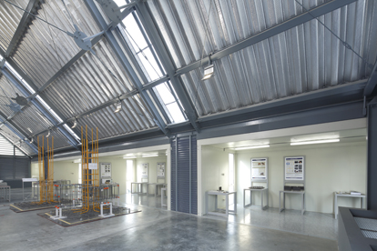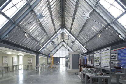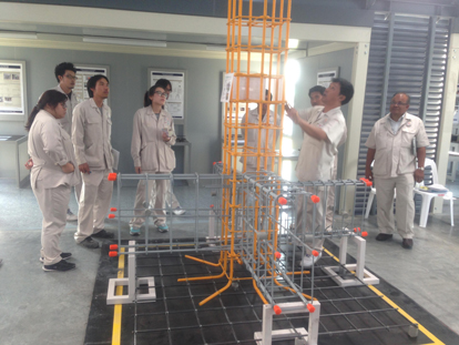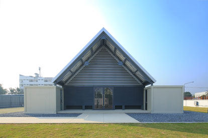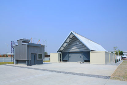 タイ竹中ローカルスタッフが現物で各種工事の管理の勘所を学ぶ研修施設です。館名の「TAKSA」はタイ語で「技能」を意味します。8基のコンテナを等間隔に並べ、その間に切り妻型の屋根を架けるというシンプルな構成です。風が抜け、自然換気が計れ、快適な空間となっています。コンテナにはテーマごとの展示、中央のホールには様々な施工実物サンプルを設置し、技術の変化などに合わせて容易に更新できるようにしています。
