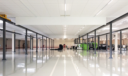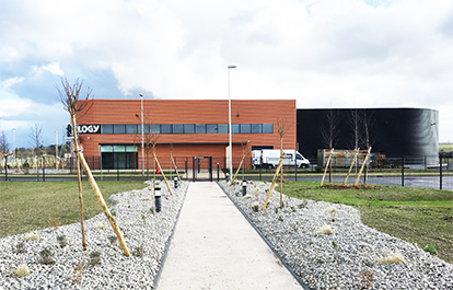 美しいブドウ畑を背景に、ここで生産される電磁コイル製品をモチーフに外観をデザインしました。内装は、エントランスホールや階段に、地元産のブランディーを詰める樽に用いる木材を使用し、工業製品と地域性豊かな素材を対比させています。また、製造ラインを含むすべての居室には水平窓を設けており、自然光による時間の移ろいが感じられます。