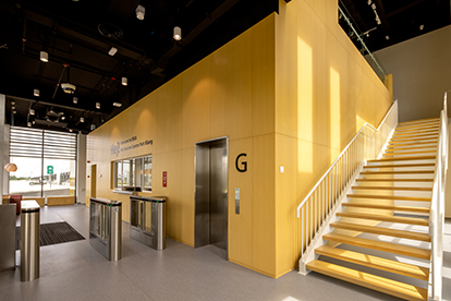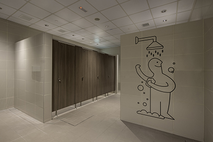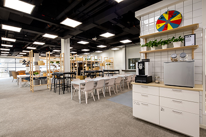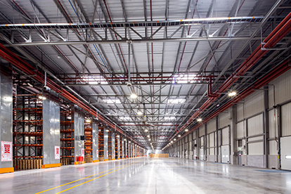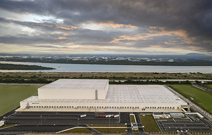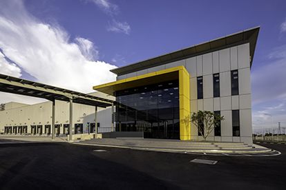 イケアのインド・アセアン向け物流拠点として計画された、アジア地域最大規模の配送センターです。同社のデザインコンセプトを引継ぎながら、巨大な物流施設をグレートーンでシンプルかつ機能的にまとめ、オフィスエントランスにアクセントとしてコーポレートカラーの黄色を配しました。オフィスのインテリアは同社の家具や壁面グラフィックをちりばめた、生き生きとして楽しげなワークプレイスとしています。