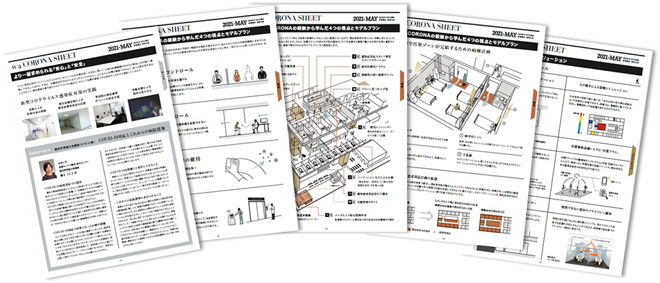 「新型コロナウイルス感染症対策の実践」「専門家へのインタビュー」「With CORONAの経験から学んだ4つの視点とモデルプラン」「4つの視点に関わるソリューション」を盛込んだリーフレットをご用意しています。