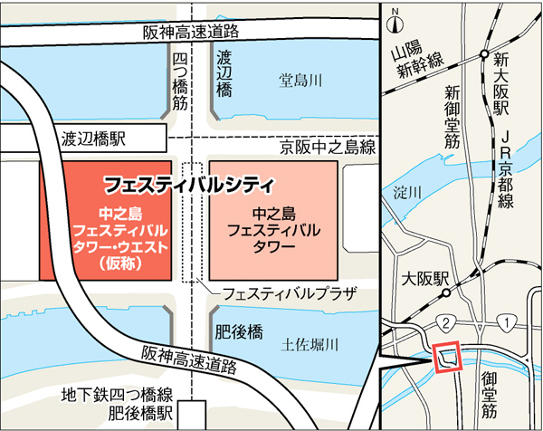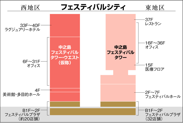 中之島フェスティバルタワー・ウエストが着工~2017年春にツインタワー完成 高級ホテルに美術館、多目的ホールも 「フェスティバルシティ」が誕生~