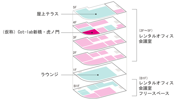 当社もオープンイノベーションの拠点「(仮称)COT-Lab新橋・虎ノ門」として4階に拠点を構え、建設DX(デジタルトランスフォーメーション)を加速させるべく、多様な企業との協業によるイノベーション推進を図ります。