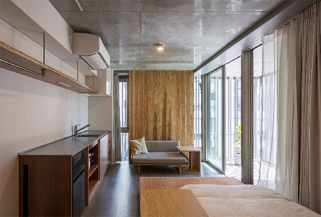 燃エンウッド®CLT耐力壁を単身者向け社宅「警固竹友寮」に初適用