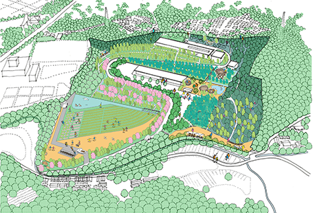 兵庫県川西市中央部の丘陵地に位置する、敷地面積約8haある竹中研修所の緑地の保全・再生から始まった生物多様性実践・検証フィールドです。当社は、生物多様性に配慮したまちづくりにつながるモデルをつくる「清和台の森づくり」*2の活動を通し、持続可能な社会の実現を目指しています。
