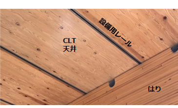CLTの板同士の間に天井設備を取り付けるためのレールを組み込むことで、テナントの入替時にもCLTを傷つけずに設備・照明のレイアウトを変更することもできます。