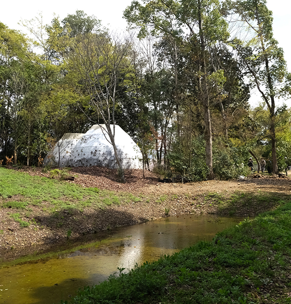 直径4.65m、高さ2.95mの建築物2棟で構成され、会期中は来場者の休憩施設として活用され、46万人以上の方が訪れました。