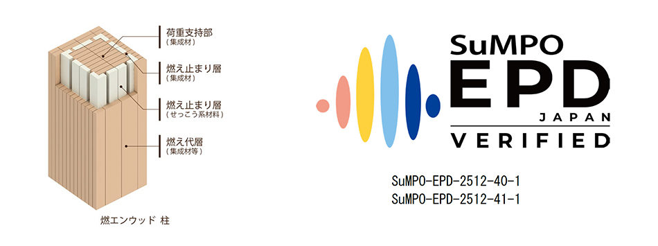 耐火集成木材「燃エンウッド®」の柱が「SuMPO EPD」認証を取得