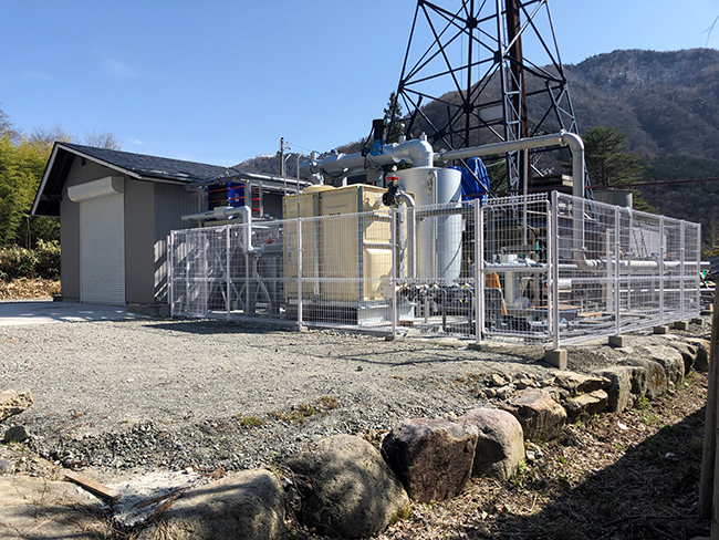 本事業は、組合と当社が協働し、2021年3月より発電を開始しています。組合が蒸気や冷却水を供給し、当社が発電所を建設、運営するスキームで事業を推進しています。当該発電所の運転は組合が24時間、365日管理し、不具合時には当社による設備の遠隔監視と、組合が共働して対応しています。これにより、低圧での地熱発電において、95%以上という非常に高い売電効率(50kW×24時間×365日に対して)を達成しています。