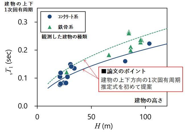 受賞論文は、建物が地震時に上下方向にどのように揺れるかについて、多数の観測記録を分析してその特徴を述べたものです。様々な種別の建物によく対応する上下方向1次固有周期の推定式を新たに提案し、減衰定数のガイド値を示しました。免震構造の増加などで重要性が高まっている建物の上下方向振動特性を明らかにし、安心安全なまちづくりに貢献します。
