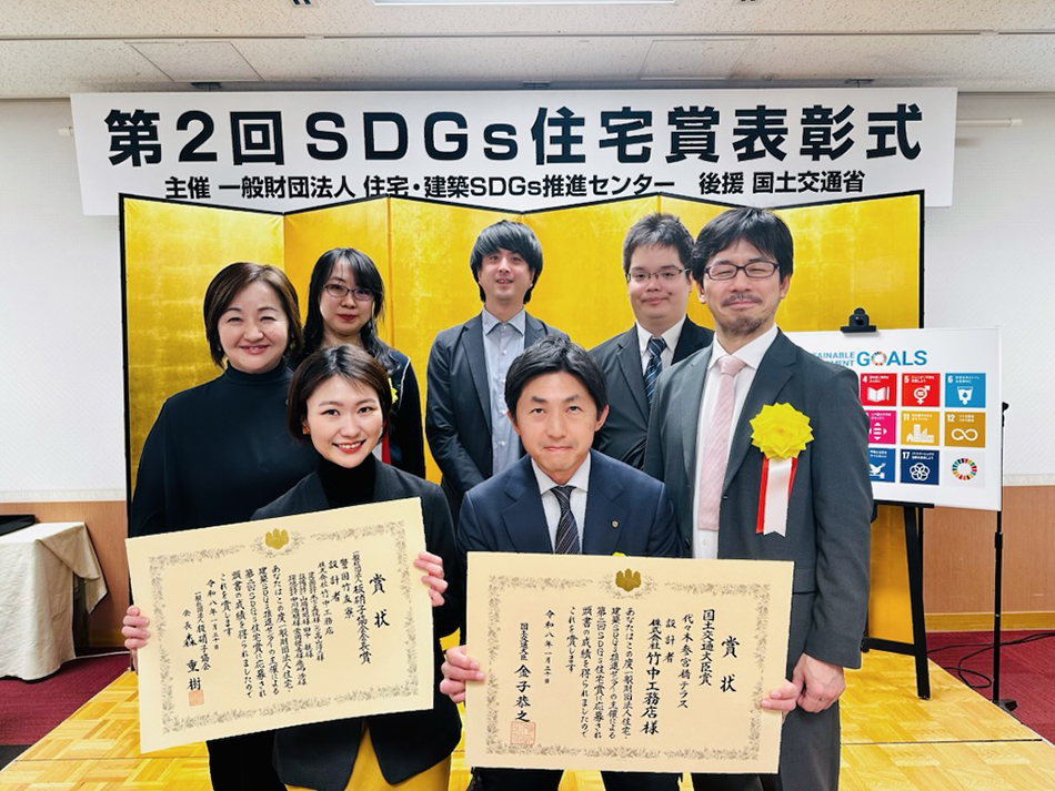 同賞は、住宅として優れた作品であるとともに、建築主(居住者)、設計者、施工者の協力により、住宅の計画から将来の廃棄にいたるすべての段階におけるSDGs達成に貢献する先導的な取り組み及びその普及効果が期待されるSDGs住宅を顕彰することを目的としています。
