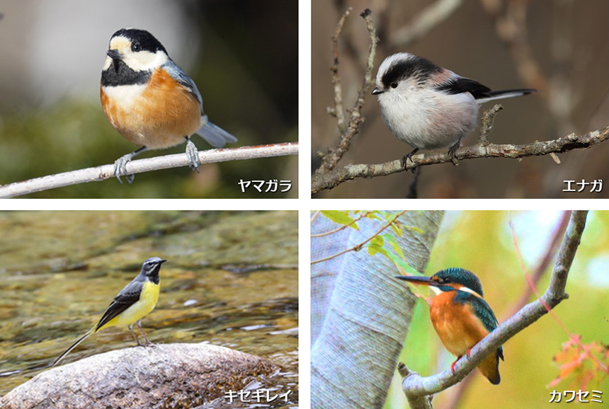 2019年に竹中技術研究所内にできた「調の森 SHI-RA-BE」で、「飛来予測モデル」の精度を高めるための実証を行っています。「飛来予測モデル」をもとに、周辺に生息する鳥から呼び寄せられそうな種を選定し、それらが好む樹種を決めたり、水浴びに適した小川を作ったりしました。ヤマガラやエナガ、渓流に棲むキセキレイなど、目標としていた種が飛来しています。その美しさで「空飛ぶ宝石」とも言われるカワセミも時折見かけますが、巣をつくるための土の斜面を設けているので、繁殖してくれることを期待しています。