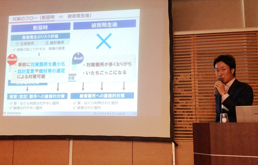 研究員としてプロジェクトを支援するなか、マンションやオフィスビルでハトやカラスの糞害などを防ぎたいというニーズが多いことを知りました。そこで、屋上外周部などにとまろうとするハトやカラスを、美観が悪くなったり鳥を傷つけたりする可能性のあるスパイクなどを使わずに、空気で驚かせてとまるのを防ぐ「TORINIX」という技術を開発しました。単なるコンサルティングに終わらず、具体的なソリューションを提供できるのが当社の強みです。