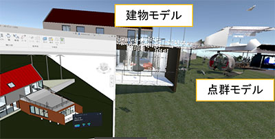 3D建物モデルと点群の重ね合わせ