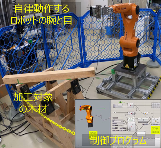 今回はその事例としてロボットアームが自律的に木材を加工する様子をデモンストレーション展示する予定です。