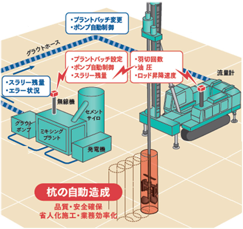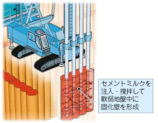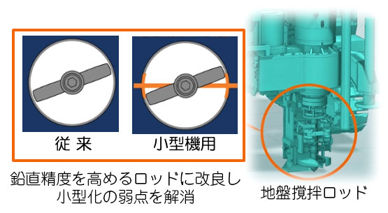 地盤改良施工機械を従来の1/3に小型化し、狭隘地での施工を可能にしました。