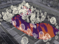 行動圏の広い野鳥の生息には比較的広域スケールの環境変数(一定範囲の緑被率等)が影響することも分かっており、広域スケールの環境変数が各種の生息に及ぼす影響を定量的に評価することで都市スケールにおける鳥類の生息ポテンシャルを評価することが可能になります。下の図は当社東京本店のある江東区を対象にポテンシャル評価を行った事例で、緑の疎なエリアの空地や街路(水色枠部分)に集中的に植樹した場合の鳥類のネットワーク性の向上を可視化して評価したマップです。このように鳥類のネットワーク性を考慮した場合に重点的に緑化すべきエリアの特定や、多数の事業地を抱える企業に対しては生物多様性(鳥類の生息)向上への貢献度の高い敷地の選定ツール等として活用することができます。空間的な繋がり(ネットワーク性)を評価し景観生態学的な立地特性を明らかにすることによって、都市スケールでの緑地計画支援に繋げていきます。