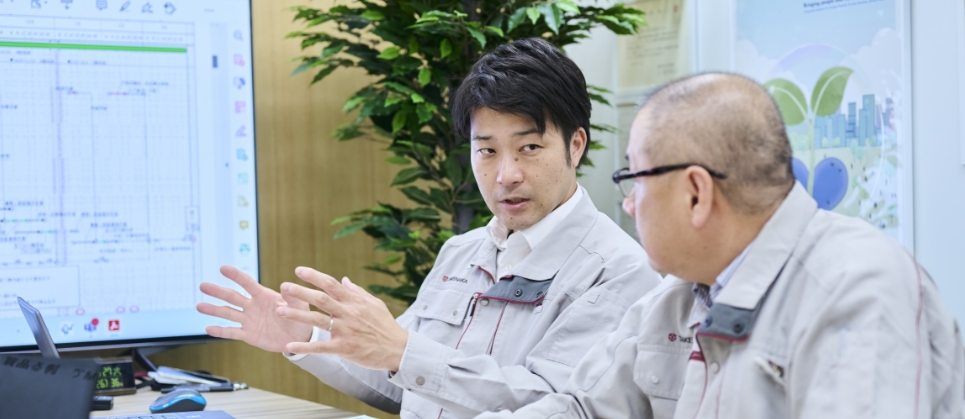 グループ長にはなったものの、プレーヤーとしての側面がまだまだ強く、計画から受注までのプロセスの組み方や、お客様との信頼関係の築き方など、これまで培ってきた知識やノウハウを自ら実践してメンバーに積極的に伝承しています。また、改修工事における設備支援を行う中で、まだまだ設備部門の人員が不足しているため、建築担当も含めた業務配分が必要であり、今後は建築のメンバーにも設備領域の業務を理解・実践してもらう場面が出てくるかもしれません。部署の垣根を越えて、建築・設備職能間の意思疎通を行い、統括するのも私の役割だと認識しています。今のポジションで決して満足せず、さらに上のステージを目指していきたいですし、部下にも自分が思い描くキャリアを実現してほしいです。
