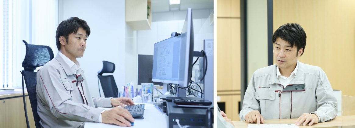 現在私は、九州支店 生産統括部 設備部門 設備施工管理3グループに所属しています。設備施工管理3グループは改修工事をメインに行う部署であり、お客様の要望を丁寧にくみ取った上で付加価値をつけた提案を行い、安定受注を実現しています。たとえば、竣工時の中長期修繕計画はあくまで概算のため、状況を鑑みて都度見直しを図れば、お客様としては予算を確保しやすくなります。さらに、社内の各部門の連携をより強化することで、外装だけでなく内装も、と幅広い領域の改修工事を請け負えるようにもなります。2025年からグループ長を任され、グループ全体としての組織成果向上に努め、部門目標達成に寄与するマネジメントに注力しているところです。