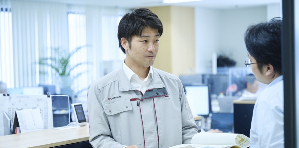 電気設備以外の施工管理にも挑戦したいと思い、転職を決意しました。前職時代からさまざまなゼネコンと付き合いがありましたが、竹中工務店を選んだのは、外から見ても人間関係の良さを感じたからです。当初は、たとえば衛生空調設備について、どこに熱源があるのか、どれくらいの費用がかかるのか、まったく知識を持ち合わせていませんでした。それでも、キャリア社員向けの研修はかなり充実していましたし、分からないことは周囲に聞けばすぐに教えてもらえたので、少しずつ経験値を積んでいけました。改めて感じたのは、竹中工務店の品質に対する意識の高さです。お客様がOK を出しているのに、工事をやり直すこともしばしばありました。