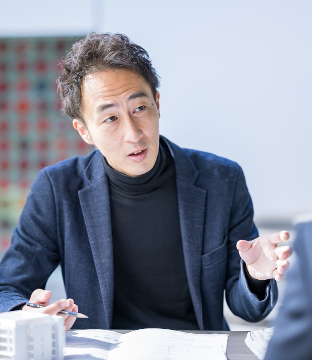 自社の設計・施工した建築物を「作品」と呼ぶ、その誇り高い仕事に惹かれました。ここでなら、まだ見ぬ風景を想像し、1本の線に気持ちを込める設計者として、また「棟梁精神」を掲げる当社において施工部門との協業によって、作品作りの大きな達成感を得られると思い、入社を決意しました。