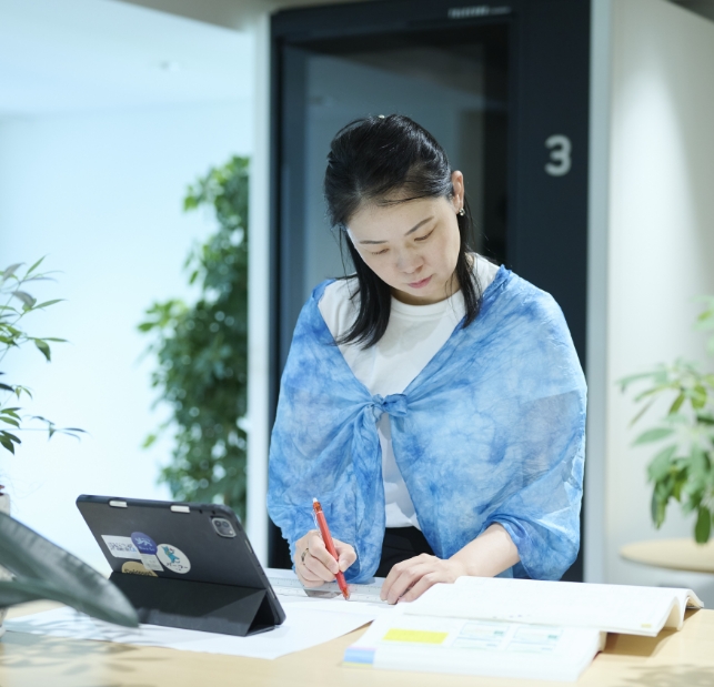 5年間ハウスメーカーで勤務したのち、個人設計事務所を設立。店舗設計や古民家改修など、さまざまな案件に携わり、ロンドンでも活動しました。帰国後、竹中工務店のプロジェクトに外部人材として参画することになったのですが、現在は社員として関わっています。これまでに経験したことのない大規模な案件のため、多くの関係者と連携する中で日々新しい発見や学びを得られる刺激的な環境です。海外の事業者とのやりとりも頻繁にあり、これまでの経験で培った柔軟な思考力や国際的な感覚を存分に生かせていると感じます。また、チームで取り組むからこそ、生物多様性や環境問題などの社会課題に対してより大きな影響力のある働きかけができることを日々実感しているところです。