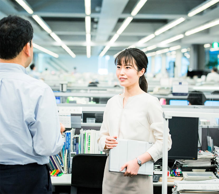 どんな仕事も一人でできることは限られていて、周囲の人とうまく力を合わせてこそ最良の結果が得られると考えています。そして、最先端のICT(情報通信技術)を駆使し、これまで世の中になかったものを生み出すのはおもしろく、思い描いたことが実現できたときに大きな喜びを感じます。