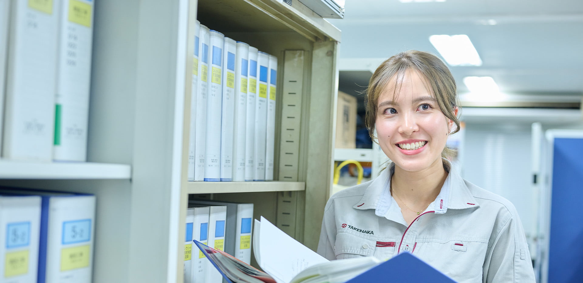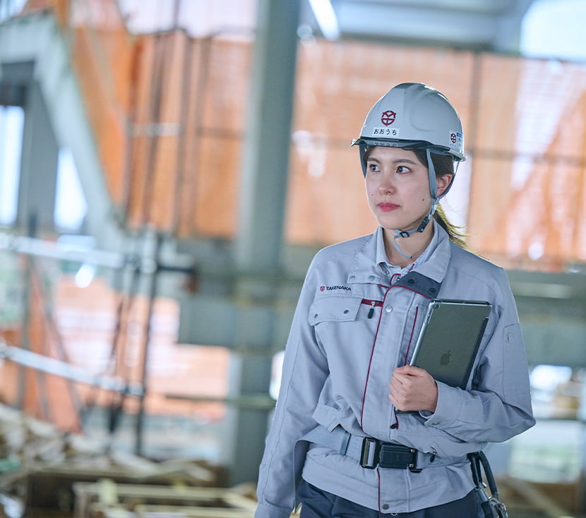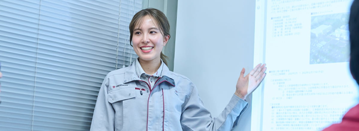 竹中工務店の強みは、やはり「人」だと思います。同期とは入社1年目の寮生活で絆を深め、全国各地に配属された今でも、互いに良きアドバイザーとして支え合っています。尊敬できる上司や頼れる先輩社員とも数多く出会えました。今の作業所にも、人間関係の築き方や仕事の進め方など、スキルの高い方がたくさんいます。この恵まれた環境を生かしながら、自分自身も努力と経験を積み、周囲から頼られる存在へと成長することが私の目標です。また、今後のキャリアとしては、現在担当する施工事務の業務を極めた上で、ジョブローテーションを活用して、管理部門など幅広い業務を経験し、より会社に貢献できる人材になることを目指しています。