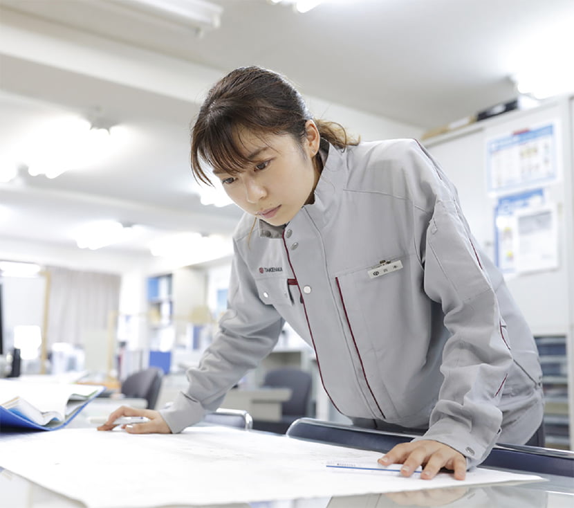計画を決める、図面の線を描く、それをもとに柱を建てる。一つひとつのプロセスにたくさんの人が関わっています。そして、よりよい建物をつくるためには、お互いの信頼関係が何よりも大事で、誠実な仕事は必ず相手に伝わります。予期せぬトラブルが発生することも多々ありますが、一丸となって困難を乗り越え、信頼関係を築いていくその過程は非常に魅力的です。誇れる作品づくりをモットーに、仕事と向き合う毎日です。