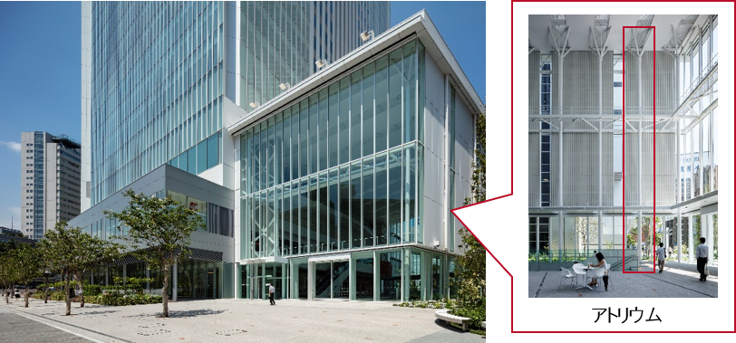 免震建物に付設するアトリウム屋根の耐震性とデザイン性を両立する技術