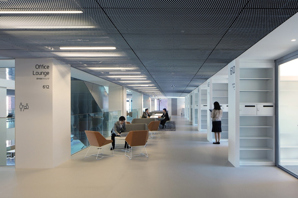 - 新設の経営学部が使用する、壁がなく見通しの良い立体的なワンルーム空間。