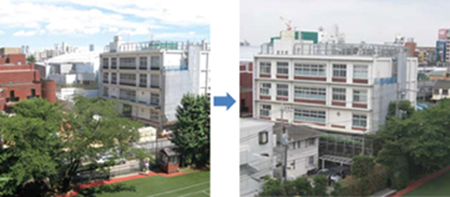 曳き屋技術による既存校舎の仮設校舎利用(光塩女子学院)