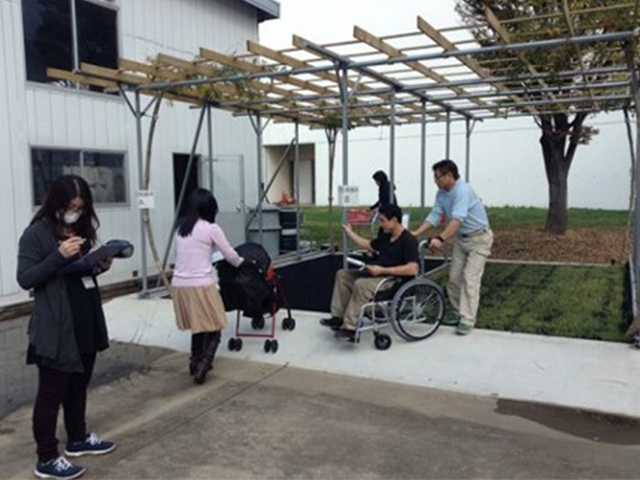 新開発のハニカム構造の保護材が車や人の重さをしっかりと支えて芝生を保護します。保護材表面の穴の径が約20mmと小さいため、ヒールや車いすのタイヤがはまりにくくなっています。アンケート調査でも9割以上の人が「ほかの保護材に比べて歩きやすい」と回答しました。そのため、芝生が踏まれて枯れてしまう、特に社会的弱者の方々が歩きにくいという課題を解決することができます。