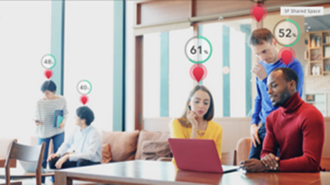 利用者の生体情報と位置情報をリアルタイムに計測・分析・可視化し、ユーザー個人へ心身の状態や改善案をフィードバックすることが可能です。さらに、多数の利用者情報をオフィス全体で統計的に把握することで、場所の利用頻度や集中度等に基づく空間評価も可能となり、個人と組織のさらなる生産性向上をサポートします。