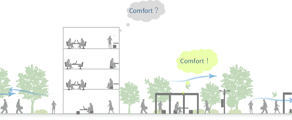 ソトコミに必要なものとして、目的または行動に合わせた空間(ハード)と、その空間へ移動するきっかけとなる情報(ソフト)があります。移動したら、“すでに満席だった”、“暑かった/寒かった”、“雨だった”とならないために、ソトを使う人が使い方を決めるための情報が必要です。