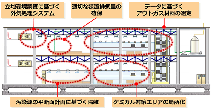 最先端の半導体・液晶の微細加工プロセスでは、分子レベルのケミカル汚染が歩留まりに影響します。ケミカル汚染は発生源が多岐にわたり、総合的かつ横断的な制御と対策が必要です。