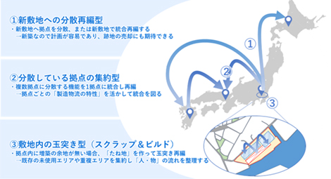 生産方法や敷地内インフラ状況を勘案し、生産への影響を最小限・工場稼働を最優先としたステップ計画を提案します。