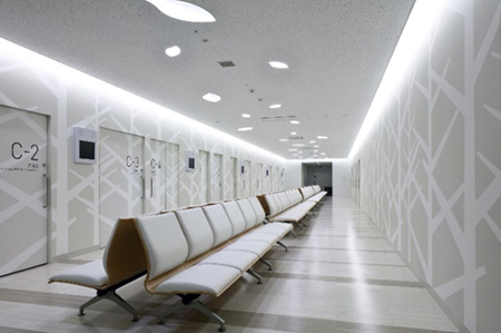 これをより効果的に実施するため、外来部門、病棟部門の両方で、ゾーニングや動線計画上の工夫をしました。