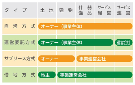 高齢者住宅事業では、運営を誰が行うかによって、様々な事業パターンがあります。
