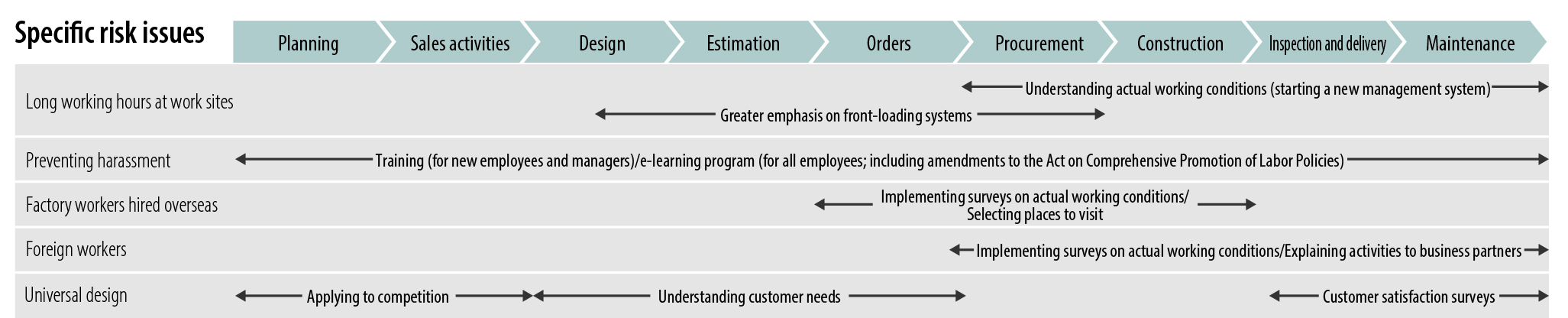 - ・Although Takenaka Corporation itself has been working hard on the issues that have been identified, the biggest problem is that these are not being addressed by the group as a whole. Since direct dialog has its limitations for expanding this to the entire group, it is necessary to consider mechanisms that can respond broadly, such as "utilizing questionnaires" or "having subcontractors make commitments when signing contracts."